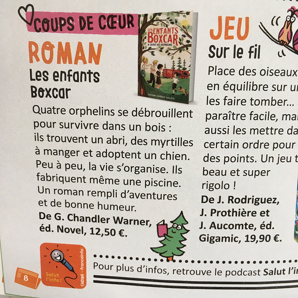 Les enfants Boxcar – Le secret des Orphelins (tome 1) – Éditions Novel Prix des Embouquineurs 2024 Télématin La maison des maternelles Coup de coeur Astrapi